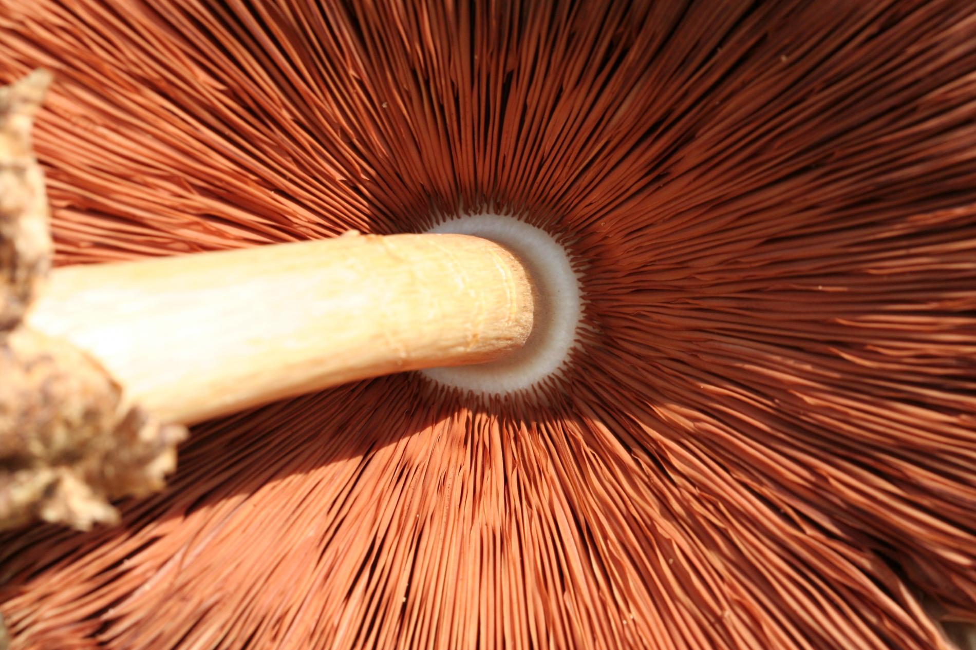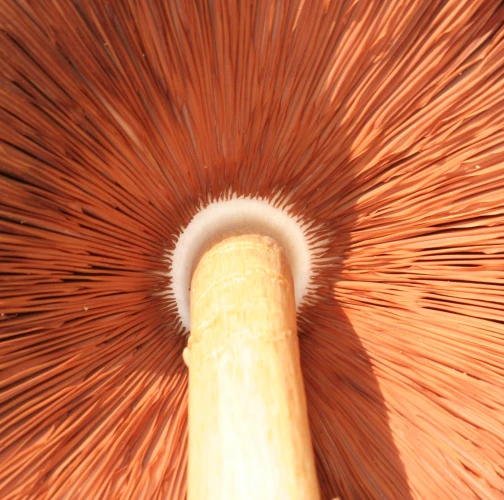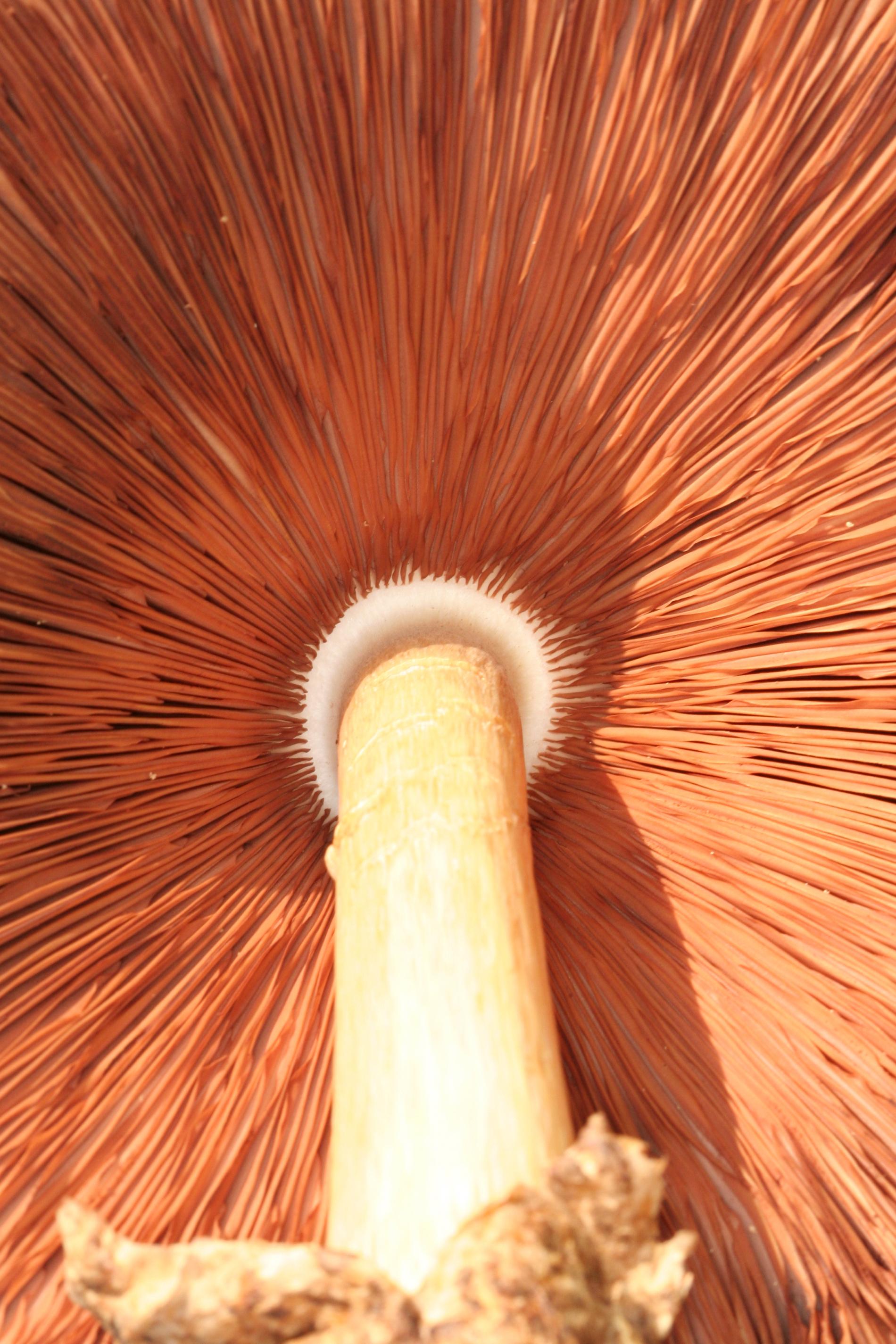 Cap is 5–20 cm across, ovate then bell-shaped, whitish, covered in long, fine, yellowish, silky, almost hair-like fibres.