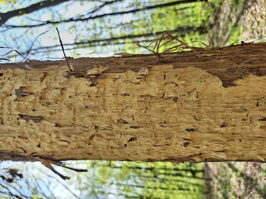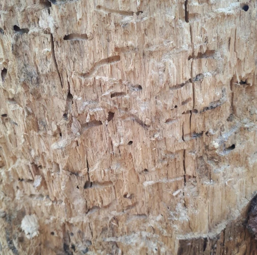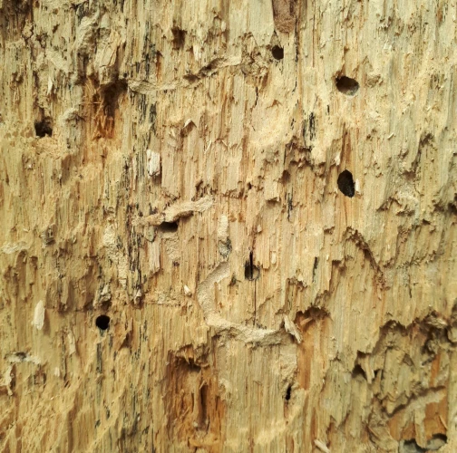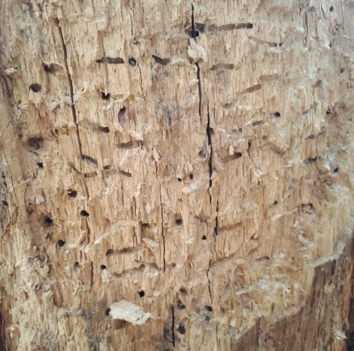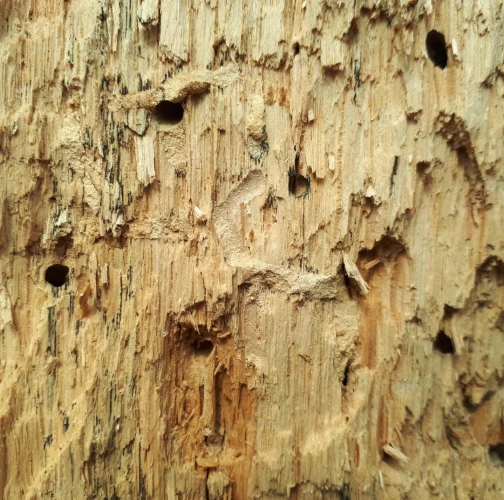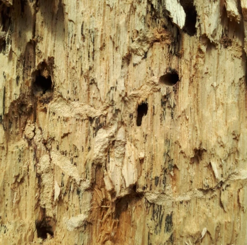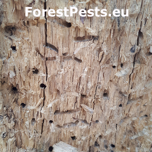 Tunnels in the sapwood, that become densely packed with sawdust-like residue. Round exit holes.