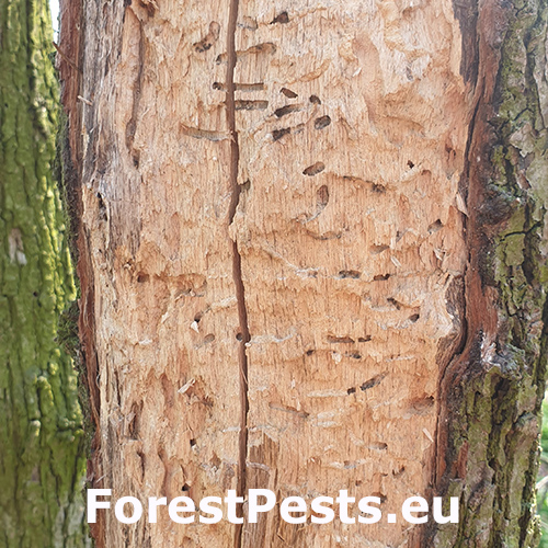 Oak sawfly Xiphydria longicollis is a fascinating insect species that has gained relatively little attention despite its intriguing characteristics. Found primarily in oak forests, this sawfly is gradually becoming more recognized for its presence and impact on its habitat. The female Xiphydria longicollis exhibits an interesting behavior of depositing her eggs within cracks and crevices in the tree's bark. This strategic choice of egg-laying locations provides protection and nourishment for the developing larvae. Once the eggs hatch, the tiny larvae burrow into the sapwood, creating tunnels that become densely packed with sawdust-like residue. What sets Xiphydria longicollis apart is its unique symbiotic relationship with wood-decaying fungi. These larvae rely on the fungi as a vital source of nutrition and also contribute to the fungi's life cycle by aiding in the decomposition of wood. This mutually beneficial partnership highlights the complex interconnections that exist within ecosystems. As the larvae continue their growth and development, they typically pupate at the boundary between the sapwood and heartwood of the tree. This transition zone offers a suitable environment for their metamorphosis into adults. Once mature, the adult sawflies emerge from the pupal stage through circular exit holes, measuring approximately 3 to 5 mm in diameter. Interestingly, the presence of Xiphydria longicollis can sometimes be detected by the markings left behind by woodpeckers. These birds, seeking sustenance, actively search for and extract overwintering larvae, thus leaving visible signs of their activity on infested trees. The infestation of Xiphydria longicollis often leads to a decline in the quality of affected wood. The attacked wood is typically suitable only for use as fuel, as its structural integrity becomes compromised due to the extensive tunneling and fungal activity.