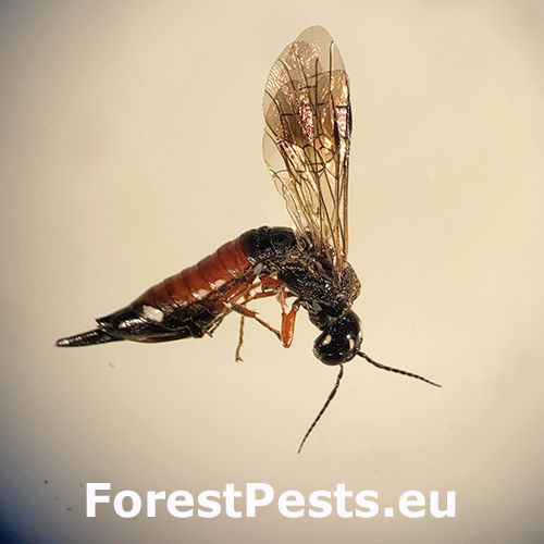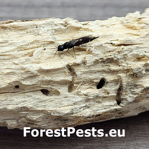 The size of the imago is 6 to 18mm, and the rear part of the abdomen is reddish. The emergence occurs roughly from May. After mating, the females lay eggs in crevices of the bark. Hatched larvae feed in all directions and live in symbiosis with fungi of the Daldinia genus, which accelerate wood decomposition. The larvae have a characteristic spine at the end, and their feeding process lasts almost the entire year. Therefore, the generation is annual, and in the spring of the following year, individuals of a new generation emerge again.