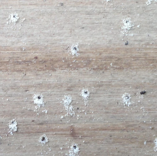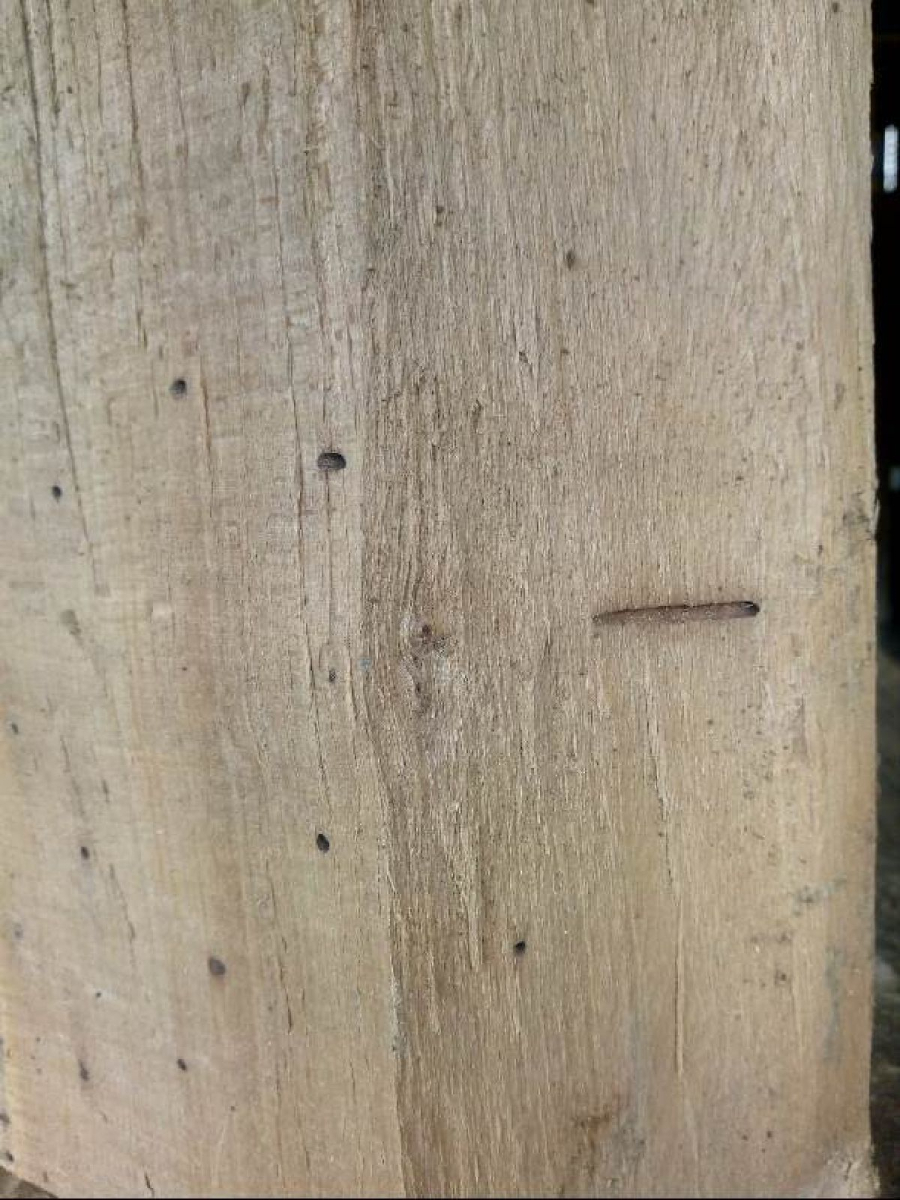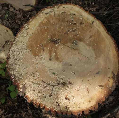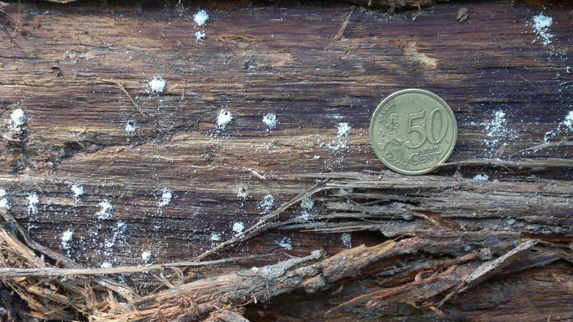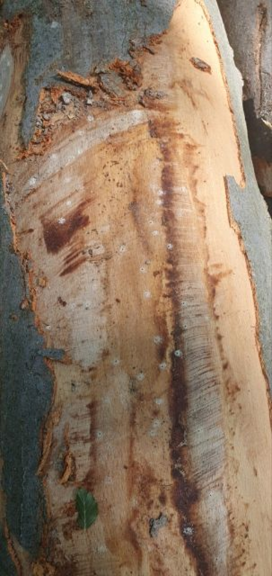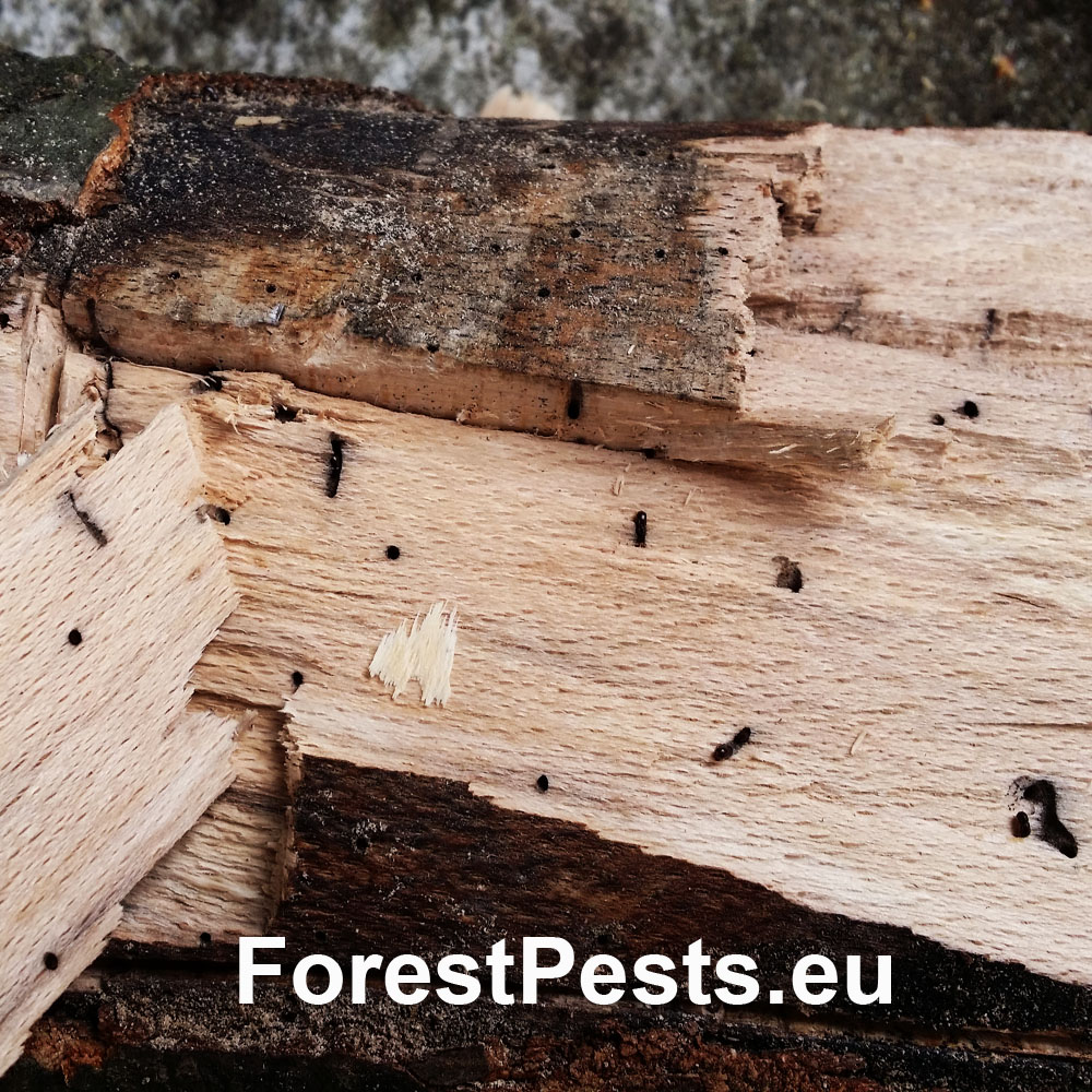 The presence of piles of white debris, later on a sawdust stacks - typical sign of ambrosia beetles - comes out of the excavation hole, with diameter of about 1 mm. the pest preffers stressed trees, dead stumps or harvested timber. Galleries can be seen from the branches to the thickest parts of the stem.
