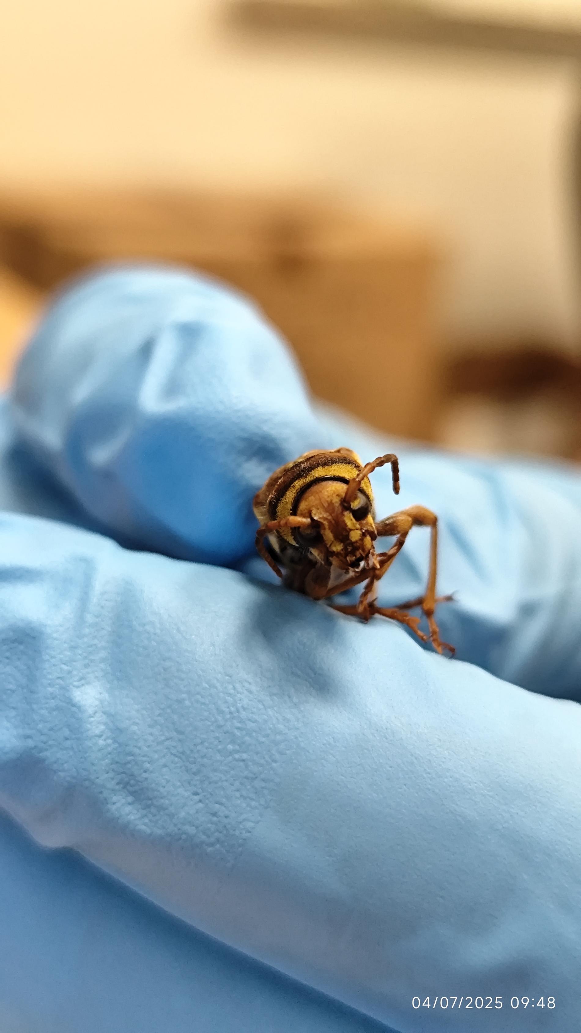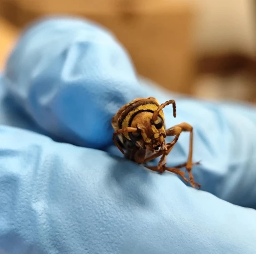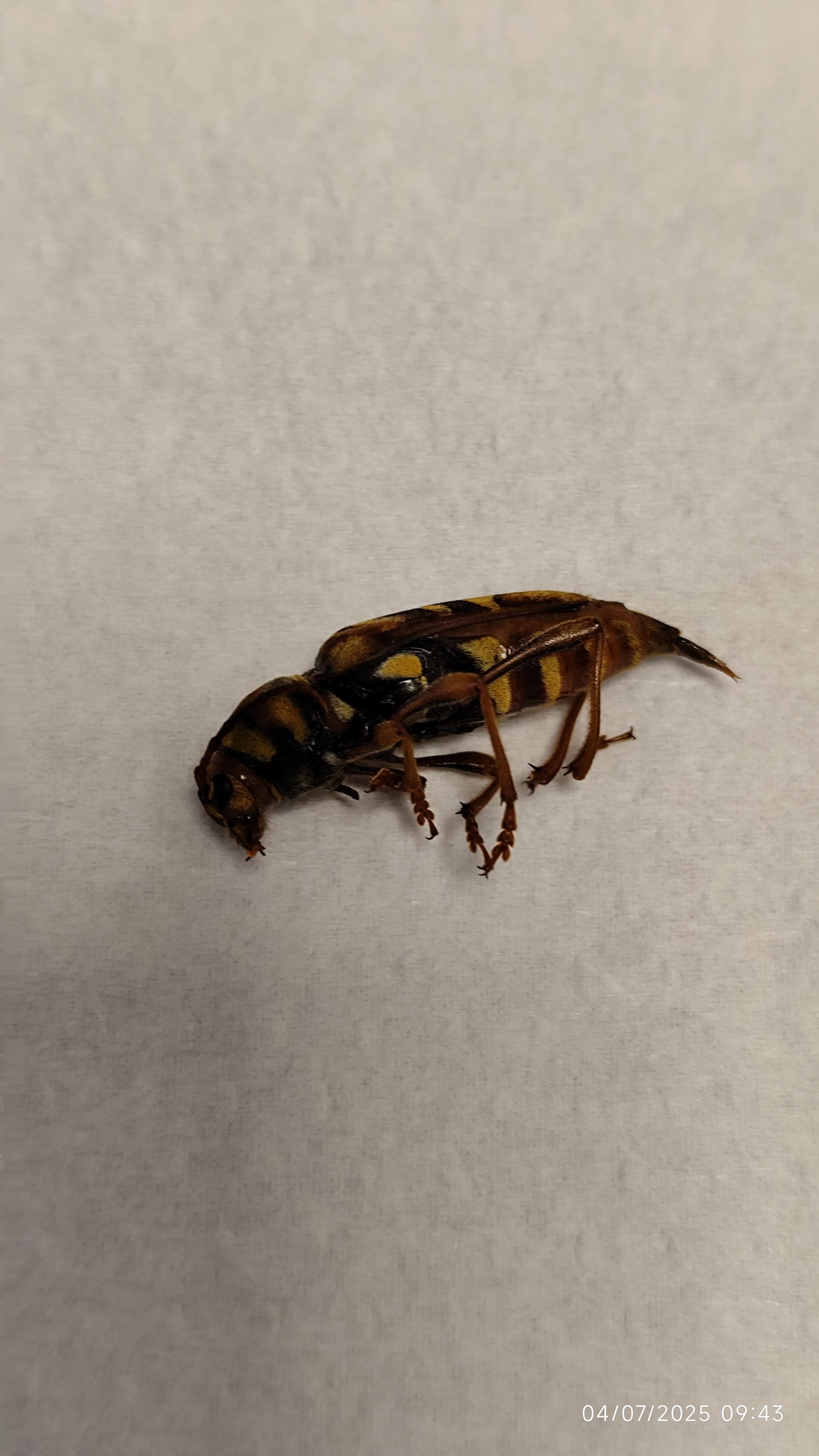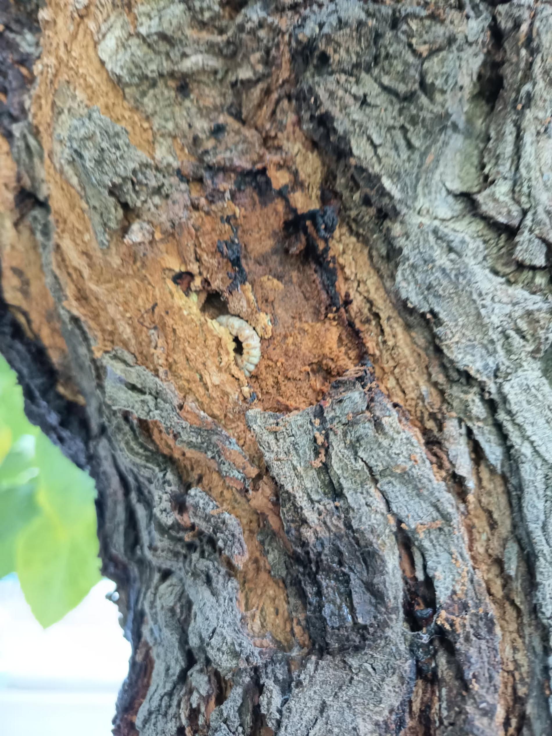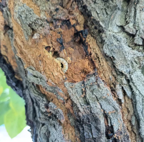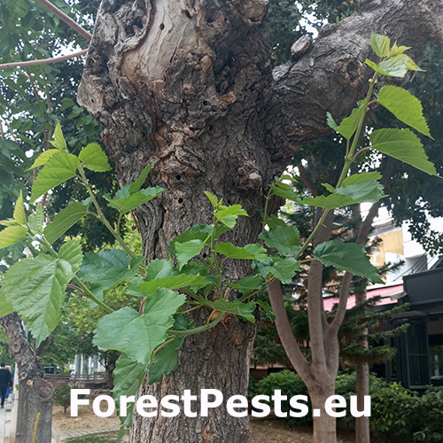 Xylotrechus chinensis is an invasive longhorn beetle native to East Asia (China, Korea, Japan, Taiwan). It has become established in parts of southern Europe, including Spain, France, and Greece. Larvae develop in the wood of living or recently pruned trees, especially Morus alba, but also occasionally apple, pear, and grapevine. Adults are active from June to August. The larvae tunnel through the heartwood, causing sap flow, bark splitting, branch dieback, and tree death. Infested trees often show numerous emergence holes. Due to its ability to attack apparently healthy trees, the species poses a serious threat to ornamental and urban trees, and it is monitored as a quarantine pest.