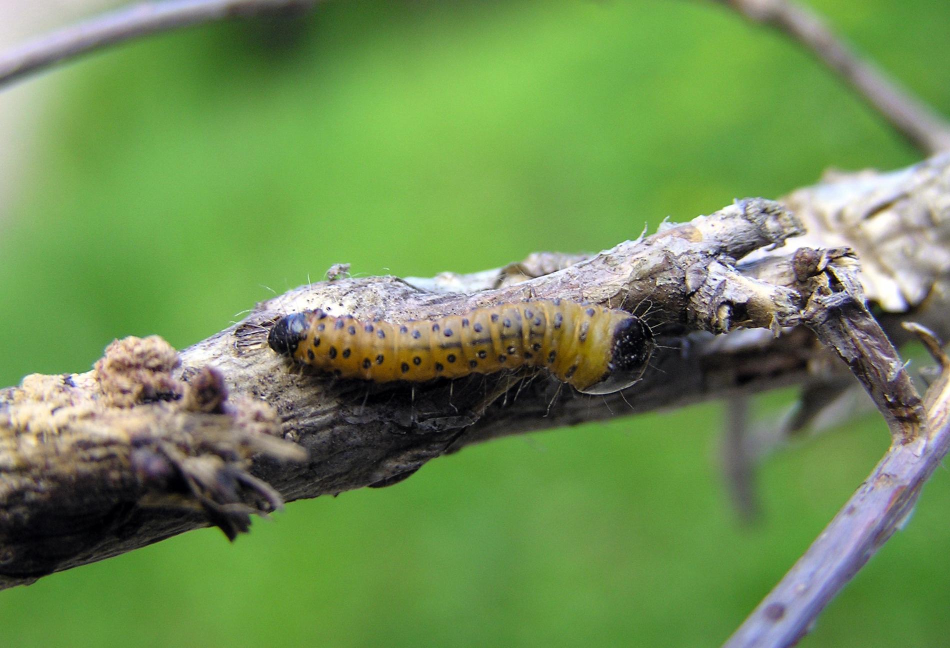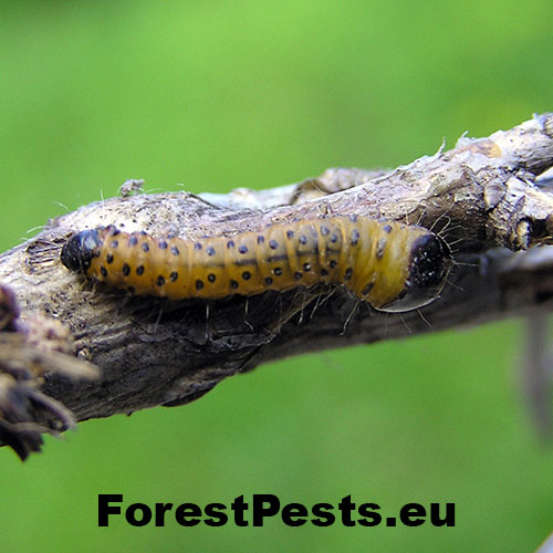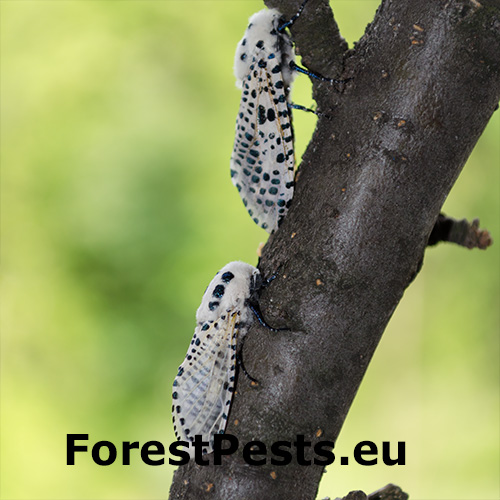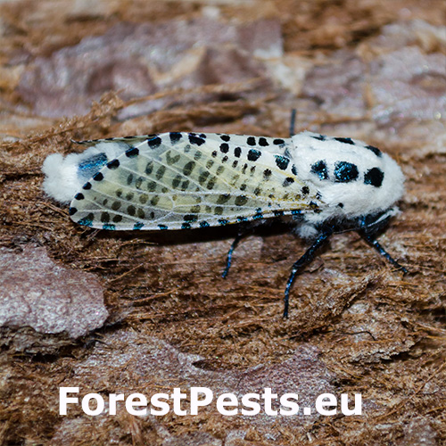 It is a relatively large moth with a 5-7 cm wingspan. The wings are white, studded with black spots. The female lays eggs onto buds, leaves or branches. At first, larvae bore into the leaf stem, later they proceed into the core of thin twigs and later also into thicker branches. Larvae live inside of 20 cm long galleries. It takes two years for the larvae to develop. It pupate in the gallery or in the exit hole. It can be found on fruit trees and cause also damage to forest stands, especially younger ones. It prefers southern and warmer localities. It does not have a tendency towards outbreak; it occurs rather solitary.