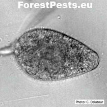 Ovoid non-papillate sporangia in water. Foto: C.Delatour.
