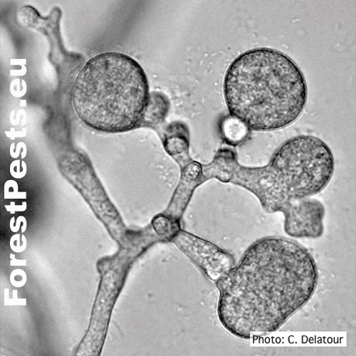 Mycelial lumps and chlamydospores in grape-like clusters Photo: C. Delatour. http://forestphytophthoras.org